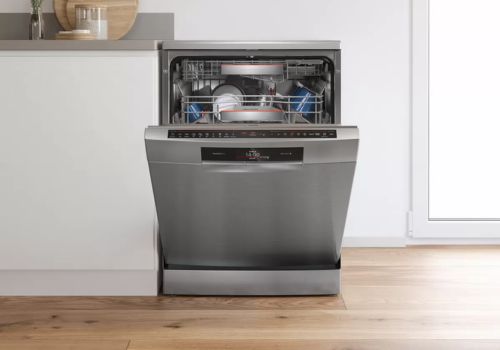 Free-standing are stand alone units like 60 cm, slimline and compact dishwasher that can be placed freely floor. 60 cm and slimline dishwashers can be installed under the kitchen counter but they will not have continues plinth panel or be flush with the kitchen cabinetry.