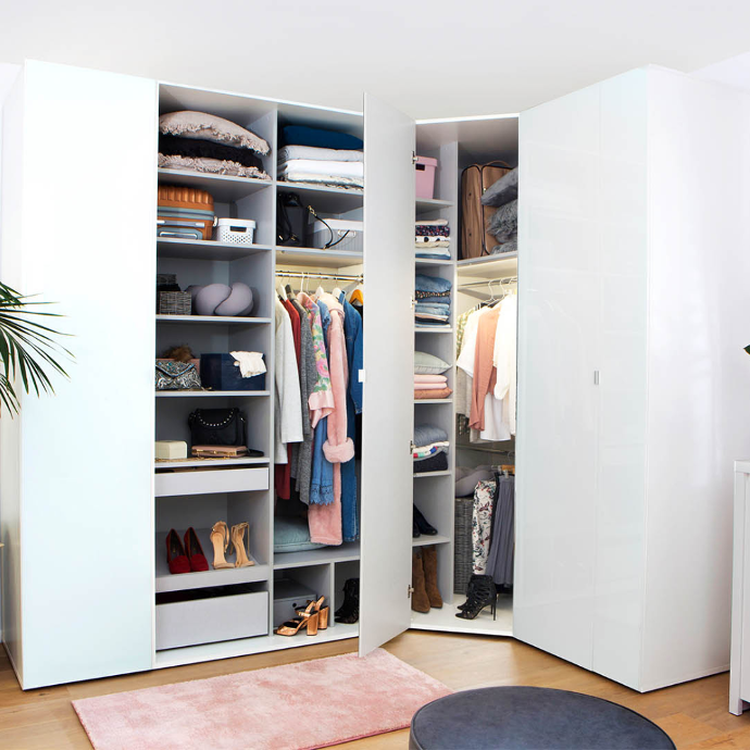 The Flex corner connector can be connected Flex hinged or sliding door wardrobe.Thanks to clever solutions, you will not only save time, but also enjoy a pleasant and tidy interior.