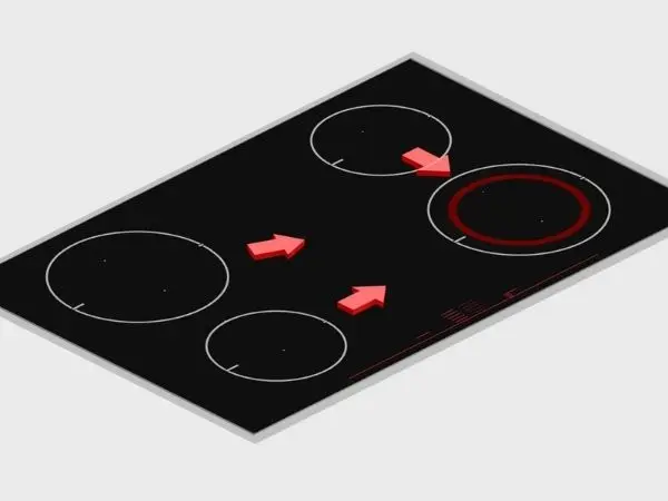 If something boils over, the cooktop automatically turns itself off and saves the last selected setting.
